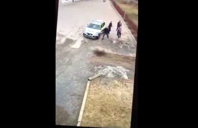 فيديو يظهر إعتداء رجل على أفراد الشرطة السويدية وسيارتهم ينال ملايين المشاهدات في مواقع التواصل الاجتماعي