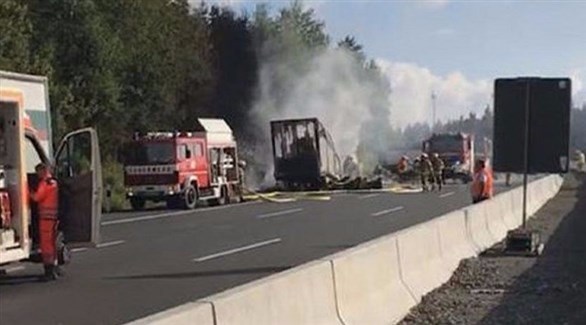 أعلنت الشرطة الألمانية، اليوم الإثنين، عن إصابة 31 شخصاً بجروح إثر اصطدام حافلة بشاحنة في جنوب البلاد، إلى جانب 17 شخصاً لا يزالون مفقودين من بين ركاب الحافلة التي اشتعلت فيها النار.