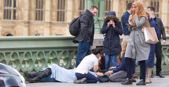 وكانت قد انتشرت صورة لفتاة مسلمة "محجبة" قرب البرلمان البريطاني وقت وقوع هجوم لندن، وهي تسير وسط الضحايا، وكيلت لها الاتهامات بعدم اكتراثها بالضحايا الساقطين، وعدم المبادرة في مساعدة ضحية ممدة على الأرض بجوارها، وانشغالها بالحديث في الهاتف.
