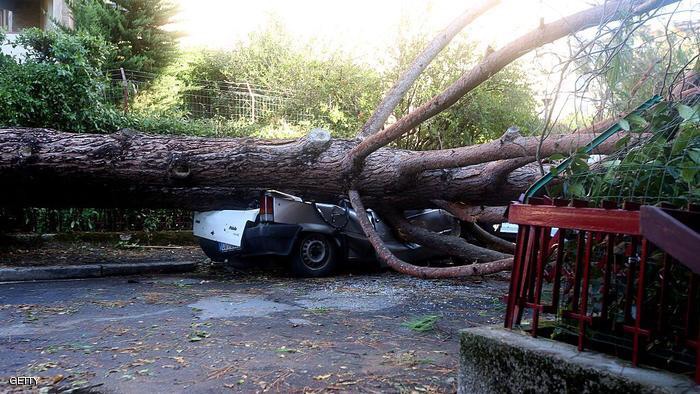 واقتلعت الرياح شجرة أخرى من جذورها لتسقط فوق تجمع احتفالي في مارزيا في دولوميتس في شمال البلاد وتتسبب بمقتل رجل ثان.