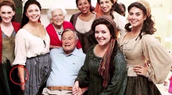 بالجهة المقابلة، أوضح المتحدث باسم بوش، جيم ماكغاث في بيان له، أن الرئيس بوش "مقعد بعمر 93 عاماً على كرسيه، لذا تسقط يده من على خاصرة الناس الذين يريدون التقاط الصور معهم. وغالباً ما يربت مؤخرات الناس ولكن عن نيّة صافية… وفي أي حال، الرئيس بوش يقدم اعتذاراته بصدق".