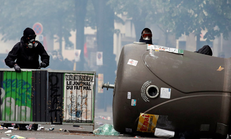 اندلعت مواجهات عنيفة بين الشرطة الفرنسية وعدد من المتظاهرين المقنعين أثناء تظاهرة في باريس بمناسبة عيد العمال، اليوم الثلاثاء 1 مايو/أيار.