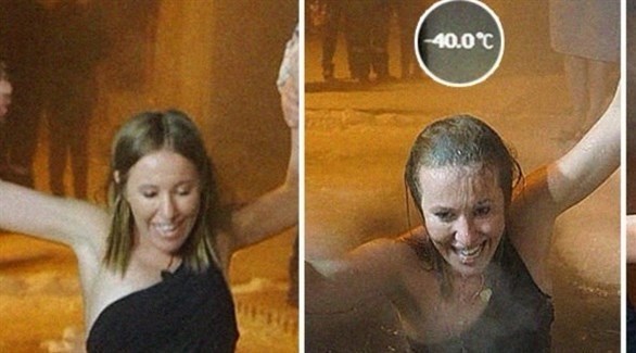 استعرضت المعارضة كسينيا سوباتشاك، المرشحة للرئاسة الروسية قدراتها على الصمود بالاستحمام في درجة حرارة 40 درجة مئوية تحت الصفر.