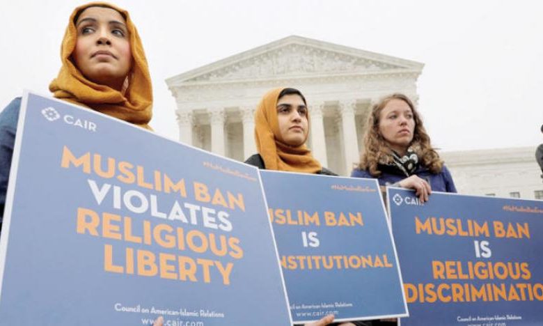 وقضى بعض الأشخاص الليل في خيام نصبوها أمام مقر المحكمة، حتى يكونوا في طليعة صف الانتظار ويضمنوا حضور الجلسة. وتجمع بضع عشرات من المتظاهرين في الصباح حاملين لافتات كتب عليها: «فخور بأنني أميركي مسلم»، و«أوقفوا العداء للأجانب». وقالت عزة الطريفي، السودانية الأصل: «إنني متحدرة من قارة خطف سكانها عبيدا لبناء هذا البلد، ويحظر اليوم على اللاجئين القادمين منها الدخول»، كما نقلت الوكالة الفرنسية.ويتناول المسعى الصيغة الثالثة من مرسوم أثار صدمة في العالم، حين قرر البيت الأبيض تطبيقه في 27 يناير (كانون الثاني) 2017، بعد أسبوع على تولي ترمب مهامه. وتحظر هذه الصيغة الأخيرة من المرسوم بصورة دائمة دخول مواطني ست دول ذات غالبية مسلمة إلى الأراضي الأميركية، بما يشمل 150 مليون شخص. ويتهم معارضو المرسوم الإدارة باستهداف المسلمين، بما يخالف الدستور الذي يحظر التمييز الديني. وكانت كل من صيغتي المرسوم ضد الهجرة الأوليين موضع معركة حادة أمام المحاكم، وشهدت آلية النظر فيهما كثيرا من التقلبات والمفاجآت؛ سواء أمام المحكمة الابتدائية وفي الاستئناف.