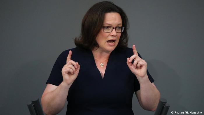قالت رئيسة الحزب الاشتراكي الديمقراطي أندريا نالس لصحيفة "فيلت أم زونتاغ" الألمانية الأسبوعية في عددها الصادر اليوم الأحد (الثامن من يوليو/ تموز 2018) : "من الجديد بالنسبة لي أن يتفاوض سفراء بشأن مثل هذه القضايا. ما هذه الأساليب؟". وذلك في إشارة إلى لقاء السفير الأمريكي في برلين ريتشارد غرينيل مع رؤساء مجالس كبرى شركات صناعة السيارات الألمانية لبحث الرسوم الجمركية الأمريكية.