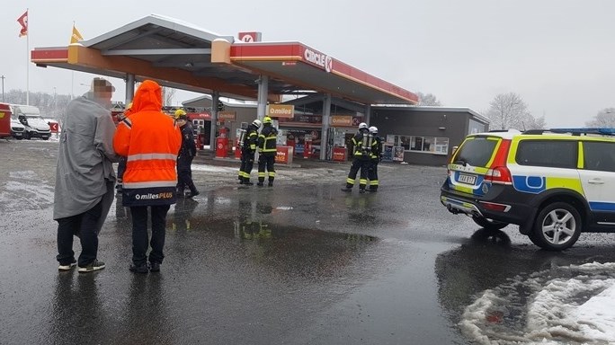 ونقلت إذاعة السويد عن خدمات الطوارئ في المدينة انه تم إطفاء الحريق في محطة البنزين، ومن المرجح أن ضاغطاً قد انفجر في قاعة الغسيل، أدى إلى انهيار جزء من جدار الغرفة، وقام رجال الإنقاذ بإخلاء المكان ولم تسجل إي إصابات.