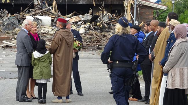زار ملك السويد كارل غوستاف السادس عشر، المسجد الذي تعرض لإضرام نار من قِبل مجهولين بالمركز الثقافي لمدينة "أوربرو" وسط البلاد وفقًا للأناضول، وتفقد الملك السويدي أنقاض المسجد، وعبّر خلالها لإدارة المسجد، عن أسفه بشأن الحادثة، وتمنى لهم السلامة.