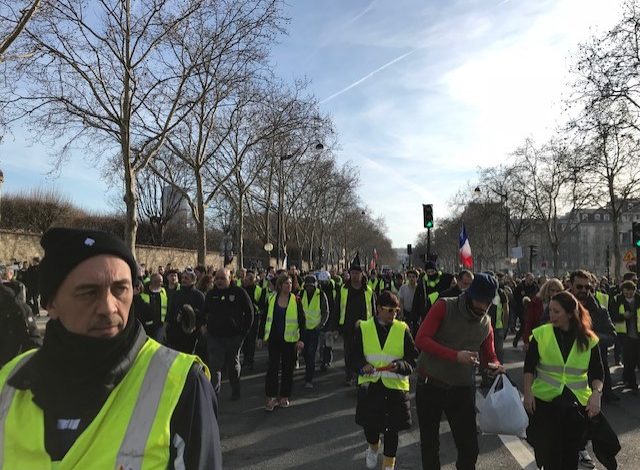 انطلقت مظاهرات الأسبوع الرابع عشر لحركة السترات الصفراء من أمام ساحة النجمة "قوس النصر" في باريس لتتوجه عبر جادة الشانزليزيه وتسير بمحاذاة متحف اللوفر ثم عبر المتظاهرون نهر السين ليتوجهوا إلى حي مونمارتر ويعودون إلى ساحة متحف انفاليد…