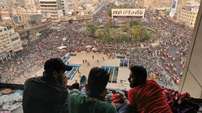 وعلي جاسب من بين هؤلاء، فهو ينشر صوره وأشرطة الفيديو للمحتجين من ساحة التحرير نفسها في بغداد، أين يطالب المتظاهرون بإسقاط النظام، في بلد يعتبر من الأكثر فساداً في العالم، وأين تتوزع مناصب الحكومة وفقاً للمحاصصة الطائفية والعرقية.