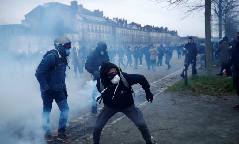 الشرطة الفرنسية تطلق قنابل الغاز المسيل للدموع على متظاهرين في مدينة نانت غرب البلاد