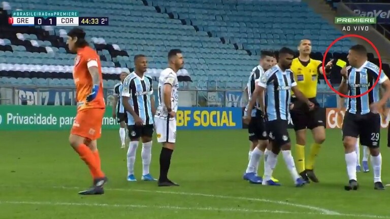 وزاد الطين بلة بعد حالة تحكيمية مثيرة للجدل في الوقت القاتل في الدقيقة قبل الأخيرة من الزمن الأصلي للقاء، حيث تعرض دييغو دي سوزا اندراد مهاجم فريق غريميو لعرقلة من قبل حارس مرمى الخصم خارج منطقة الجزاء، وطالب المهاجم بإشهار البطاقة الحمراء في وجه حارس المرمى، لكن الحكم اكتفى بالبطاقة الصفراء.