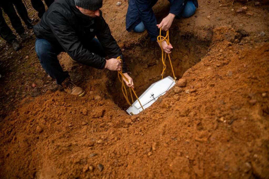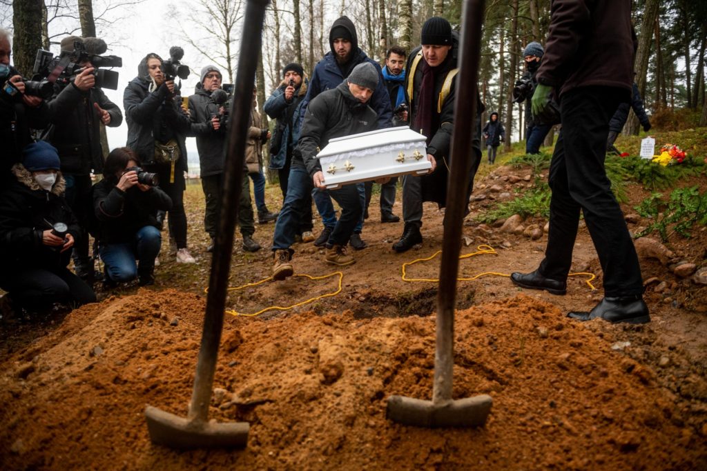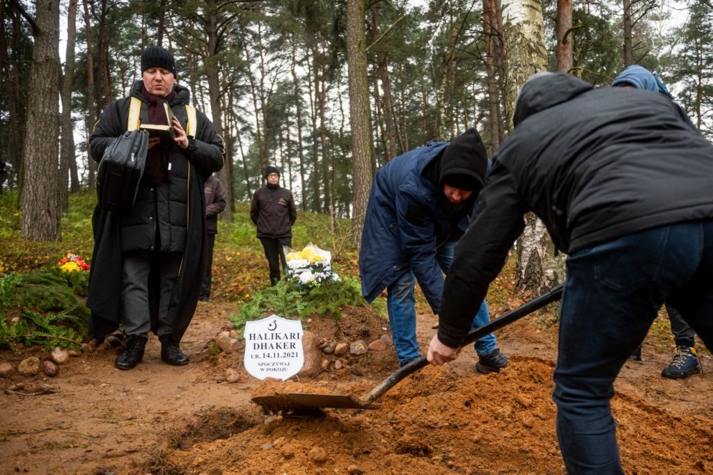 صور مؤلمة لمهاجرين يدفنون جنيناً عراقياً على الحدود بين بيلاروسيا وبولندا