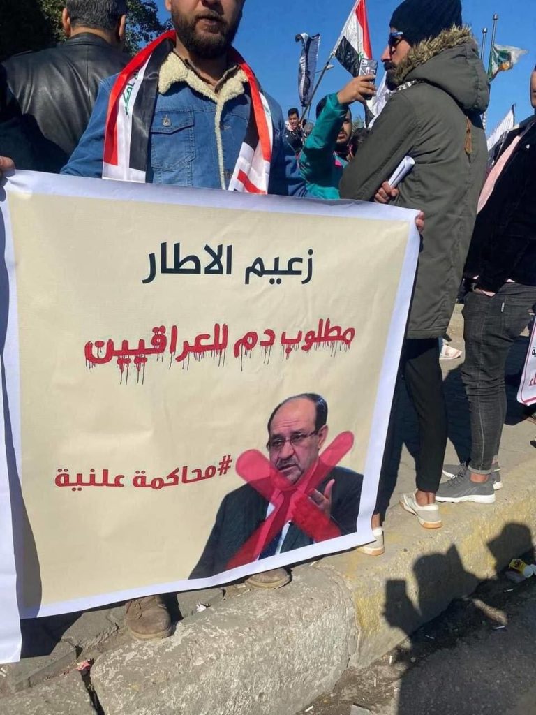 متظاهرون في بغداد يطالبون بمحاكمة رئيس الوزراء الاسبق نوري المالكي (صور)