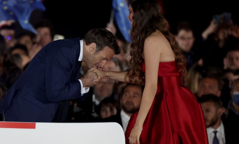 ماكرون يقبل يد مطربة مصرية بعد فوزه بانتخابات فرنسا