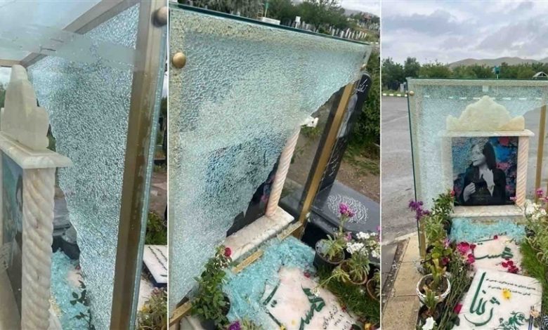 وقال أشكان أميني في منشوره على مواقع التواصل الاجتماعي، “حتى زجاج شاهد قبرك يزعجهم أيضاً؟ ليكسروه ألف مرة، سنضعه مجدداً لنرى من سيتعب”.
