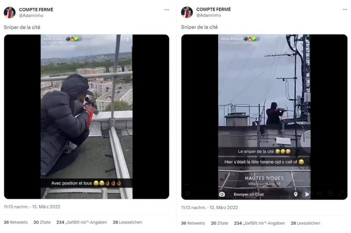 وجاء في التعليقات المرافقة “أصبح هناك قناصة على سطوح المباني في فرنسا”.