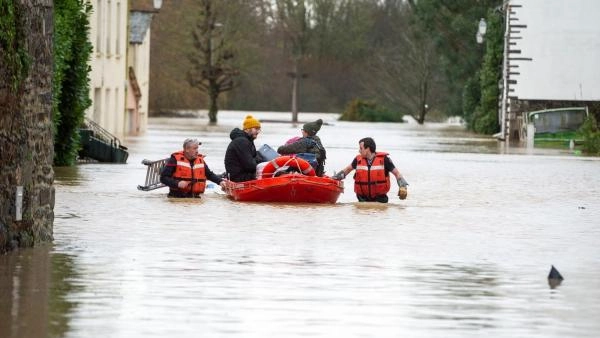 استخدم سكان غرب فرنسا القوارب للهروب من منازلهم المغمورة بالمياه صباح اليوم، بعد أن اجتاحت العواصف منطقتي نورماندي وبريتاني، ما تسبب في فيضان الأنهار والممرات المائية نحو المنازل.