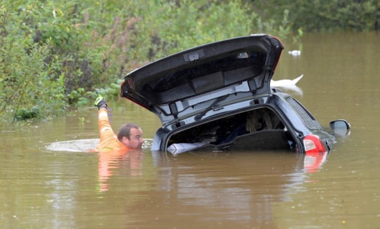 تسببت الأمطار الغزيرة التي هطلت على مدينة رينو الفرنسية بفيضانات كبيرة أدت إلى غرق شوارع المدينة.