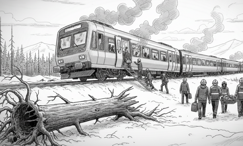 اصطدام قطار ركاب بشجرة في جنوب ستوكهولم وإجلاء نحو 60 شخصًا