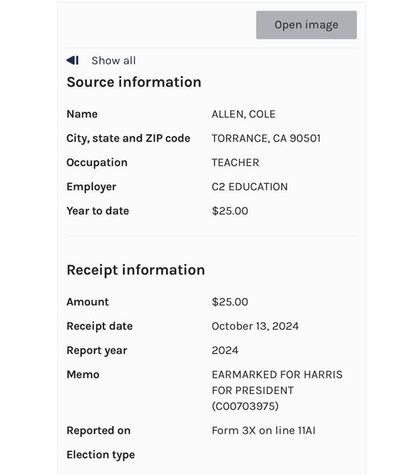 وفي سياق متصل، تشير سجلات التمويل السياسي إلى أن ألين تبرع بمبلغ 25 دولارًا لصالح حملة كامالا هاريس الرئاسية لعام 2024، وفق بيانات رسمية منشورة.