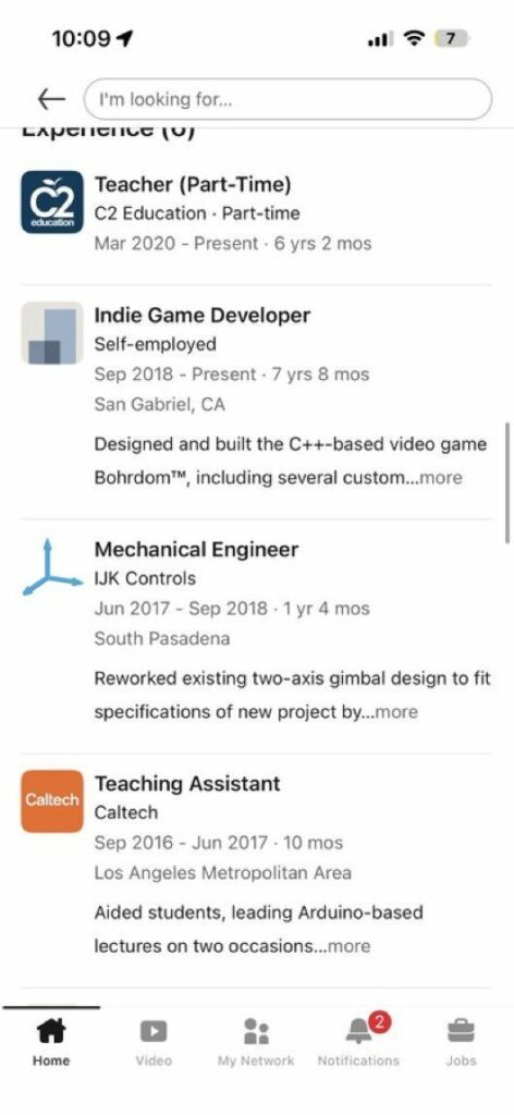 وتكشف بيانات حساباته المهنية على الإنترنت عن مسار متعدد الاهتمامات، إذ عمل كمطور ألعاب مستقل منذ عام 2018، وشارك في تطوير لعبة قائمة على لغة C++، إلى جانب خبرة سابقة كمهندس ميكانيكي، فضلًا عن عمله كمساعد تدريس خلال فترة دراسته الجامعية.
