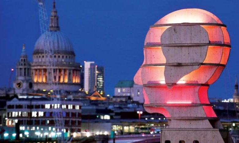 رأس منحوت يطل على لندن للتوعية بالصحة العقلية